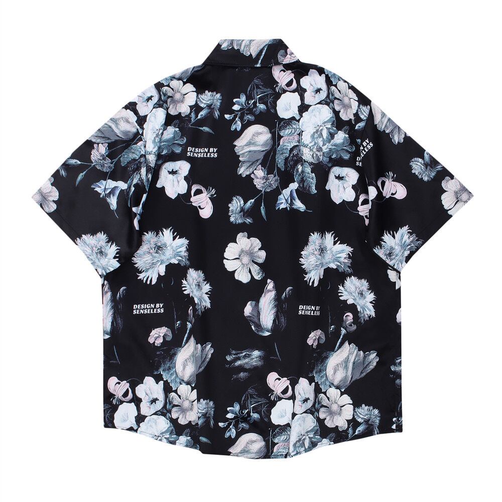 花柄 ボタニカル アートプリント 半袖シャツ 黒