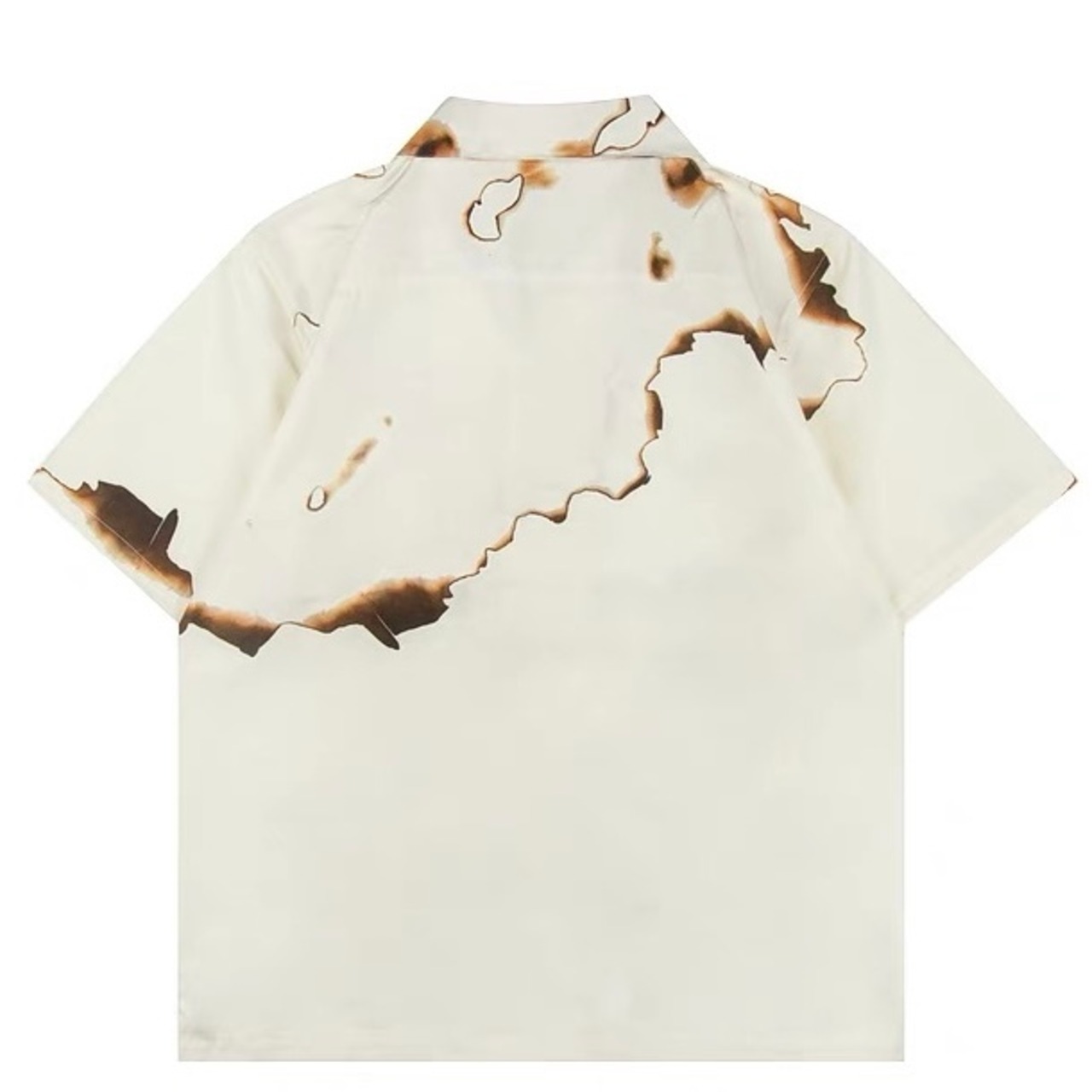 アートプリント 焦げ 開襟シャツ 半袖シャツ オフホワイト