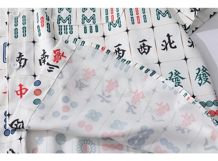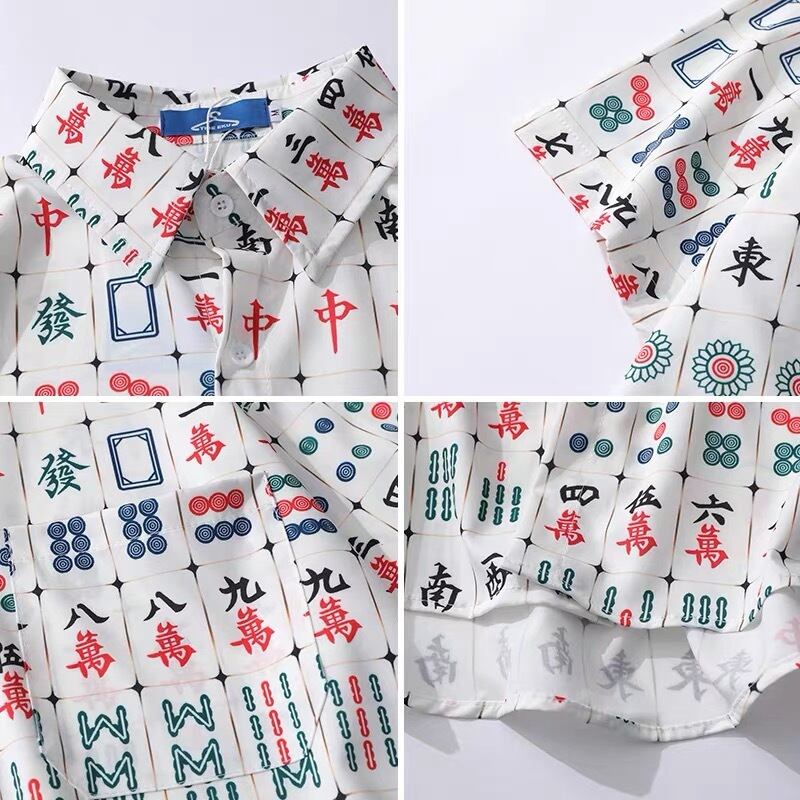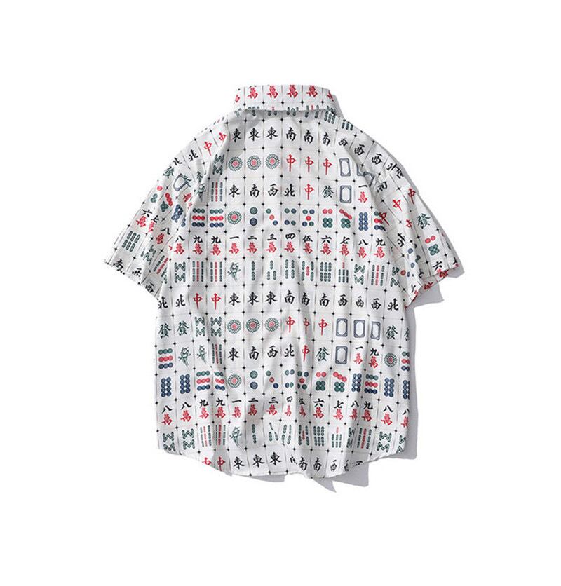 アートプリント パターン 麻雀 ゲーム 半袖シャツ 白