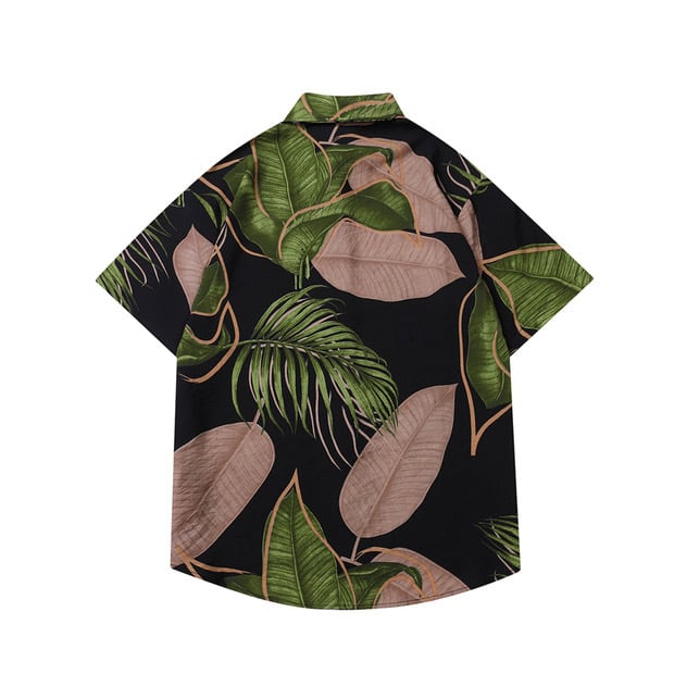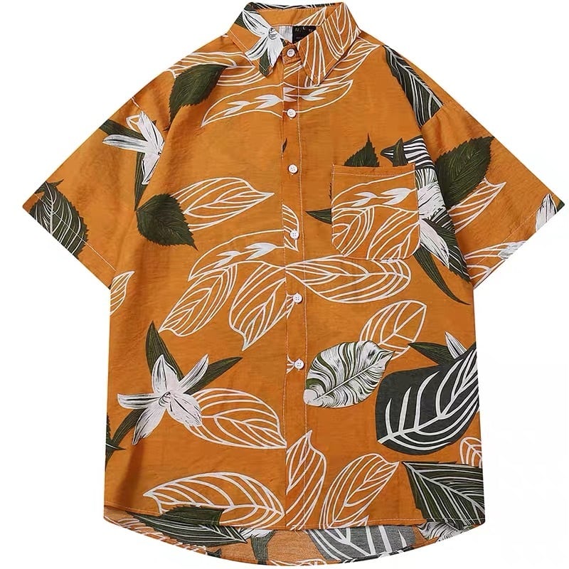 ボタニカル 花柄 葉っぱ 半袖シャツ 緑 オレンジ