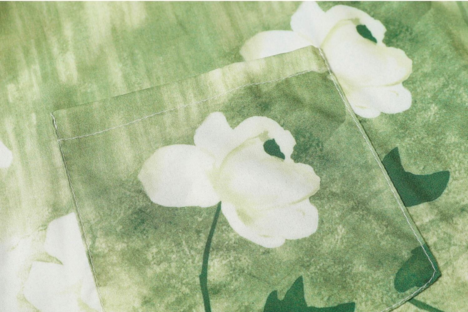 アートプリント 花柄 ボタニカル 半袖シャツ 緑 黄緑