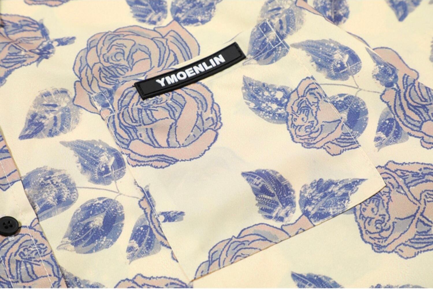 ボタニカル 花柄 薔薇 パターン 半袖シャツ 黒 白 黄