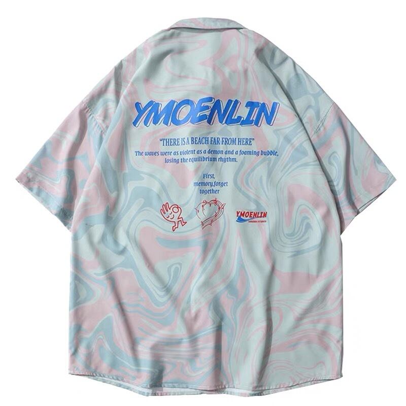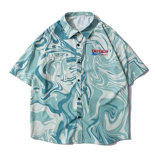マーブル 半袖シャツ 青 緑 ピンク