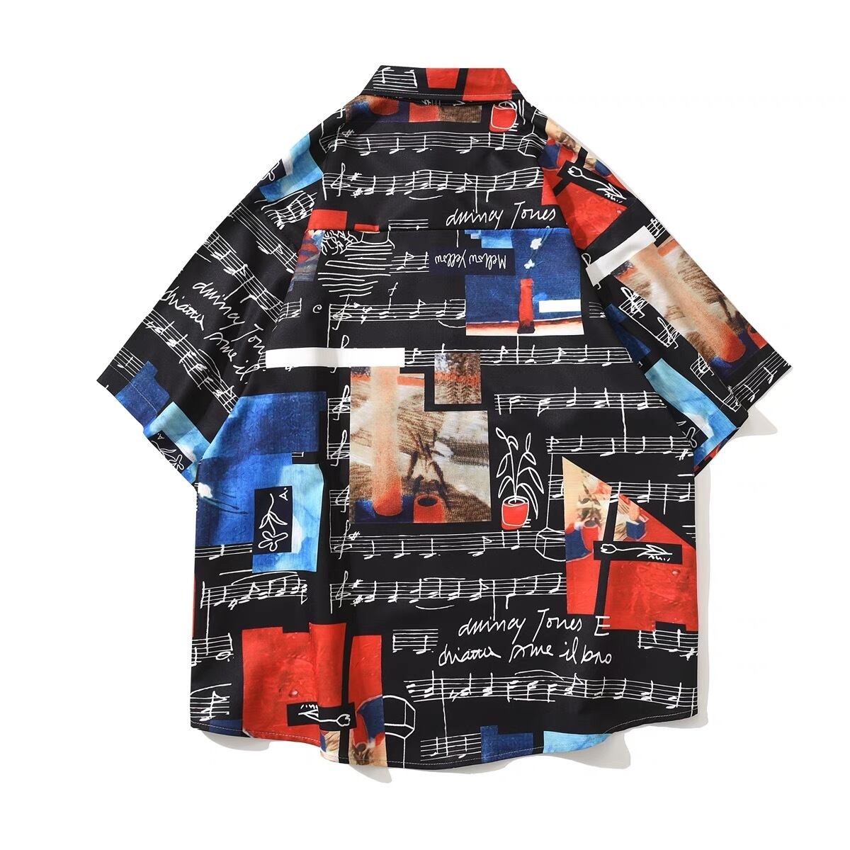 五線譜 音符 音楽 コラージュ 半袖シャツ 黒