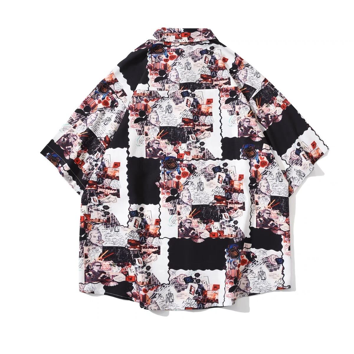 アートプリント コラージュ柄 半袖シャツ マルチカラー