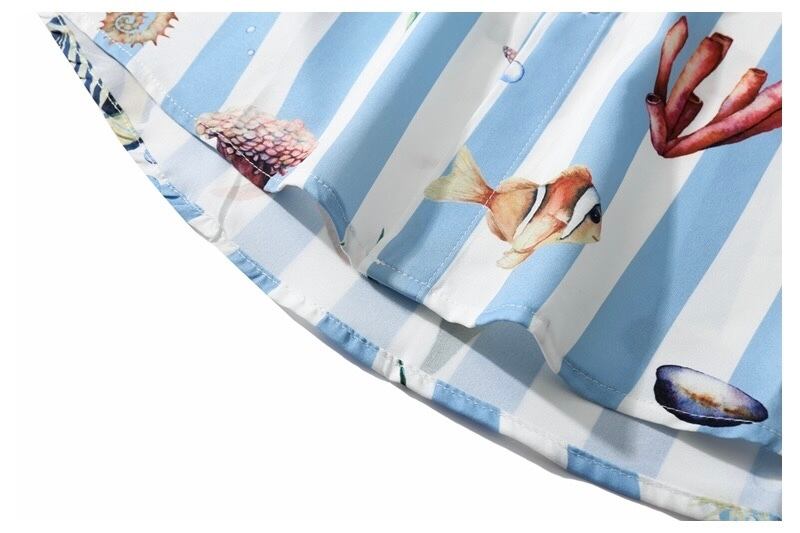 ストライプ 海 アニマル柄 シードラゴン ヒトデ 半袖シャツ