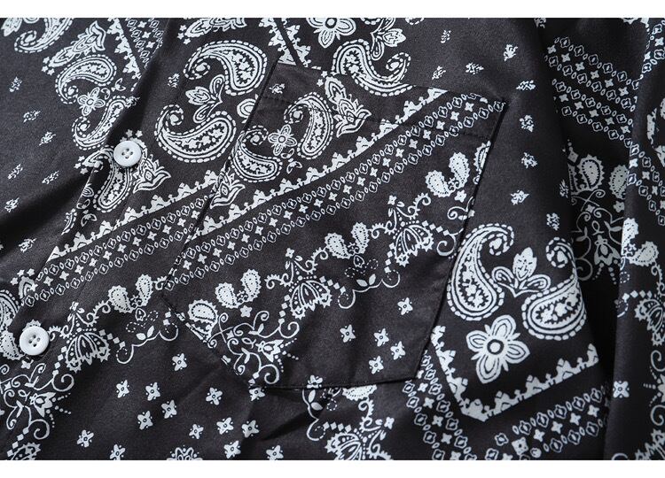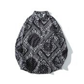 ペイズリー柄 菱形 長袖シャツ 黒