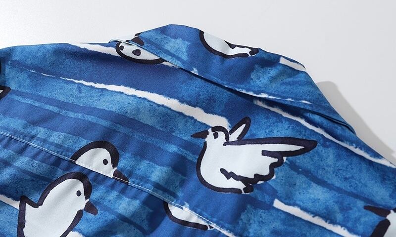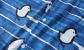 小鳥 ボーダー 開襟シャツ 半袖シャツ 灰色 青