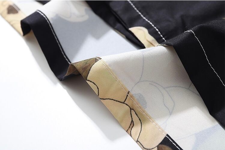 ボタニカル 開襟シャツ 半袖シャツ 黒