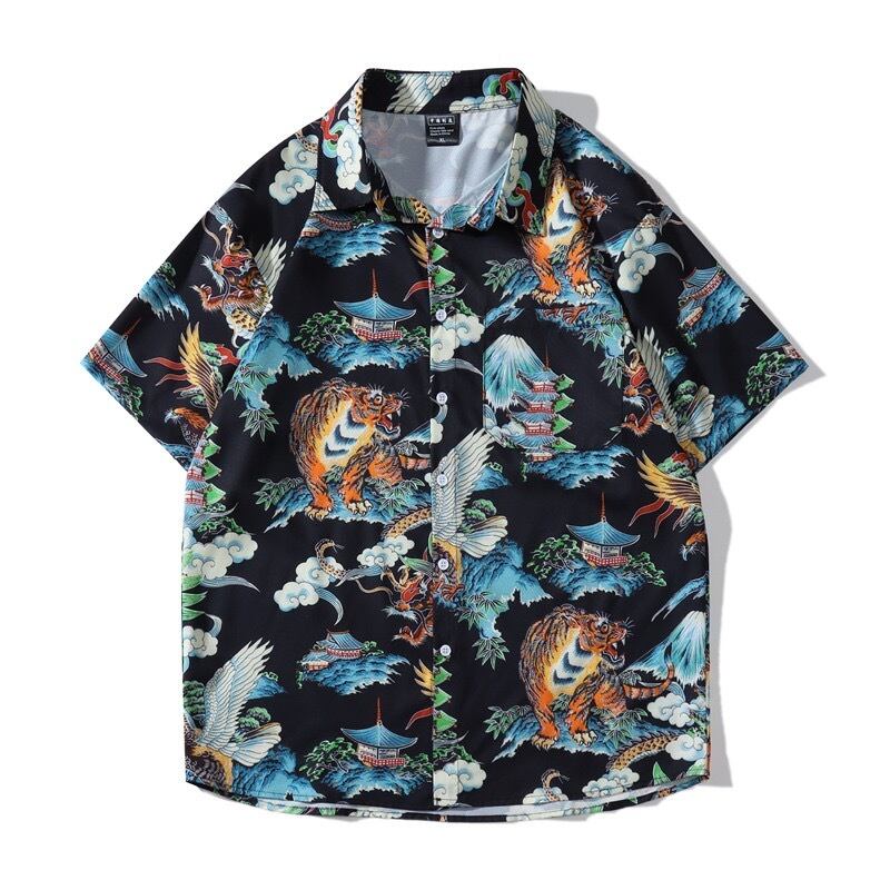 中華柄 虎 龍 アニマル柄 半袖シャツ