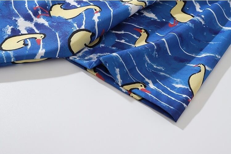 アヒル 開襟シャツ 半袖シャツ 青