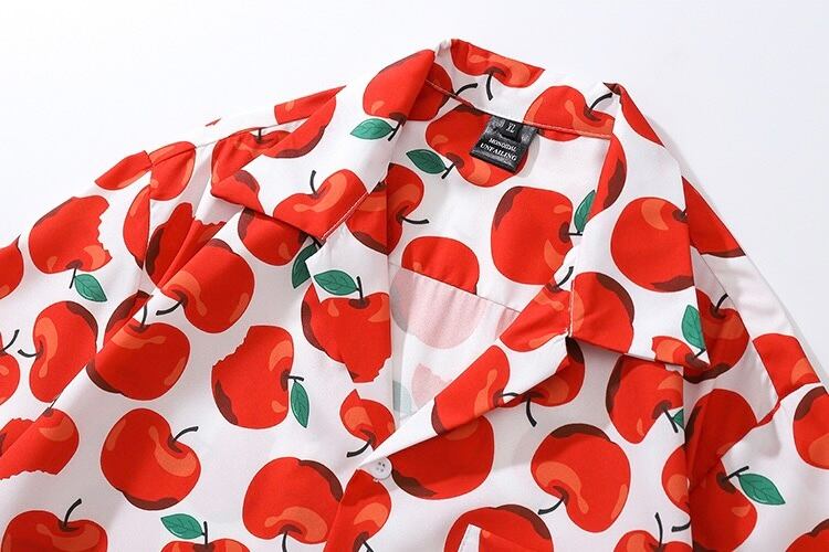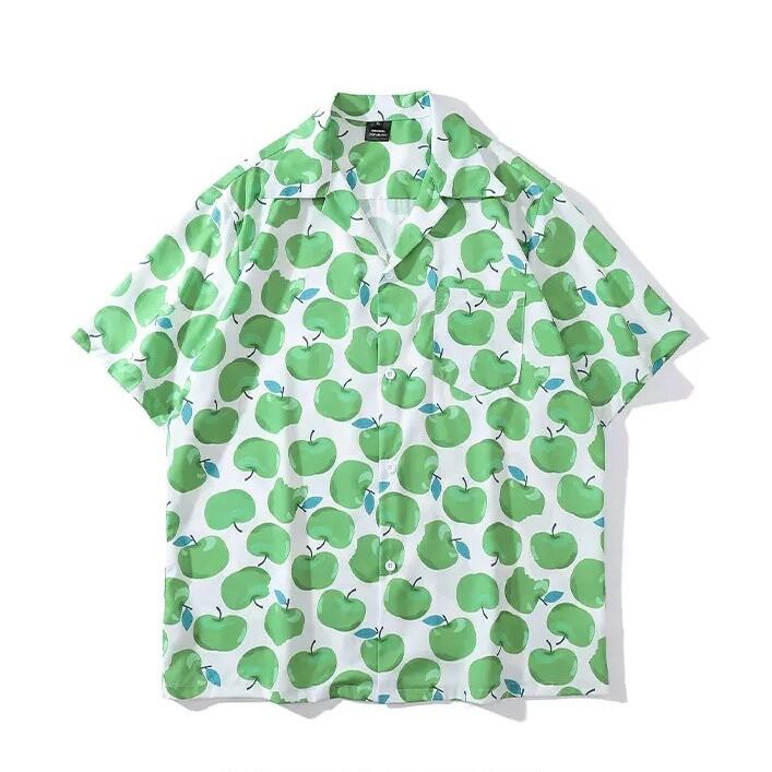 林檎 青リンゴ 食べ物柄 半袖シャツ