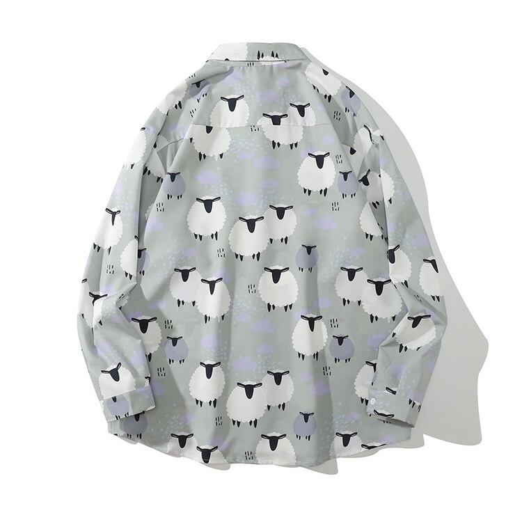 羊 ヒツジ アニマル柄 長袖シャツ 青 グレー 水色