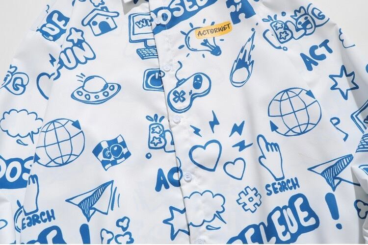レトロポップ ゲーム 長袖シャツ 白 黒