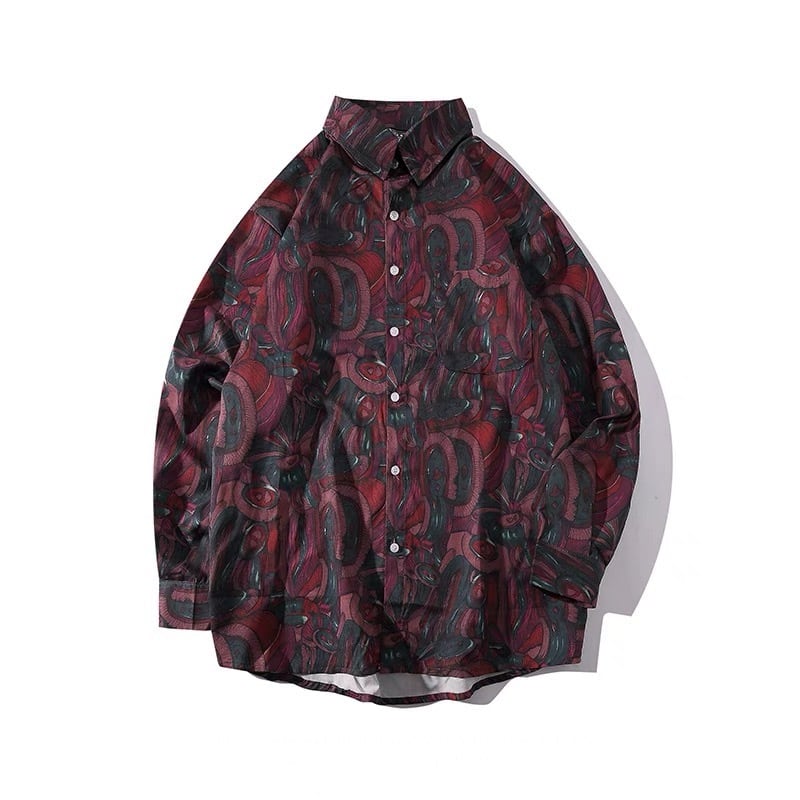 ヴィンテージプリント 長袖シャツ 青 赤