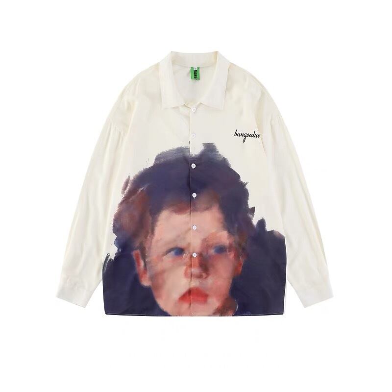 グラフィックプリント 顔 長袖シャツ 白 黒