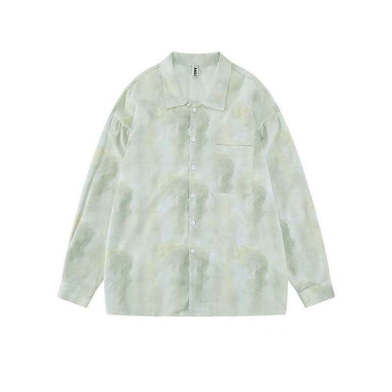 バロック アートプリント 長袖シャツ グレー 緑 薄緑