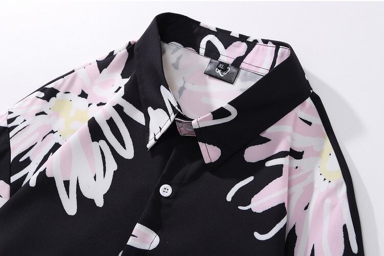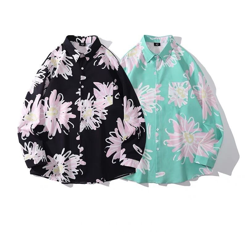 アートプリント ボタニカル 花柄 長袖シャツ 黒 緑