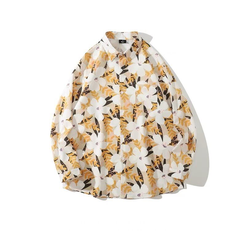 ボタニカル 花柄 長袖シャツ 黄 青緑