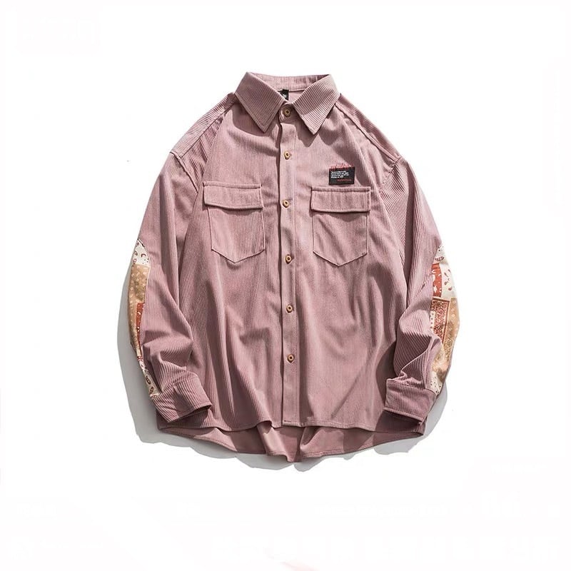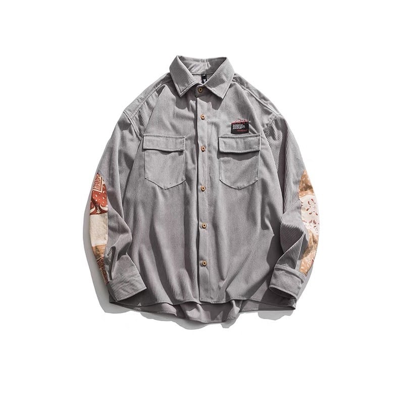ペイズリー 肘切り替え 長袖シャツ グレー ピンク 黄