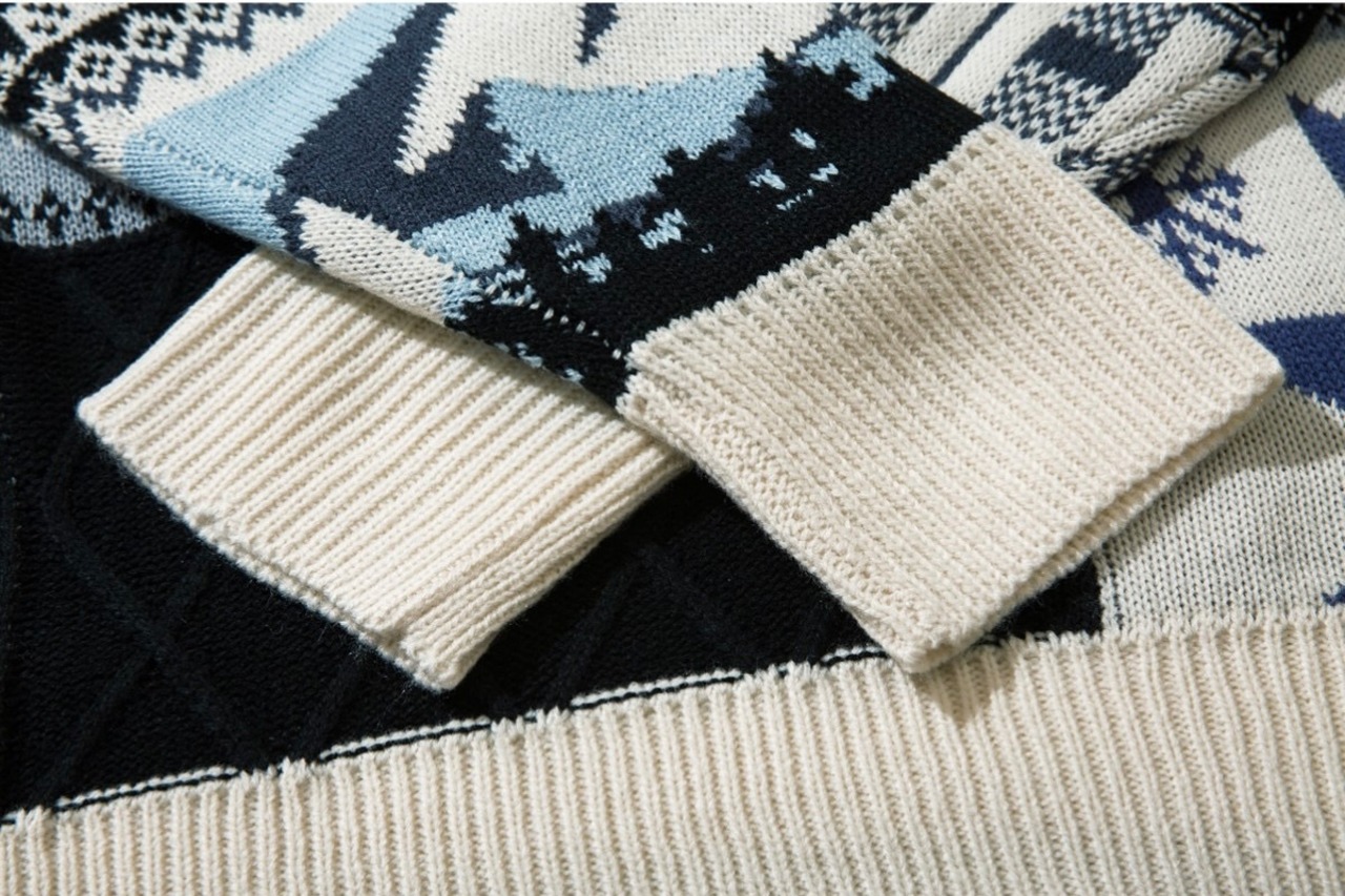 ノルディック柄 長袖ニット 雪の結晶 赤 青