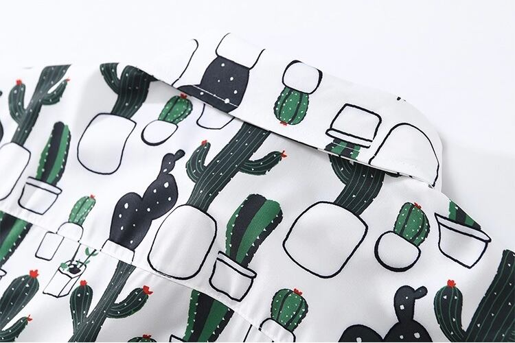 サボテン 長袖シャツ 白 ブルーブラック