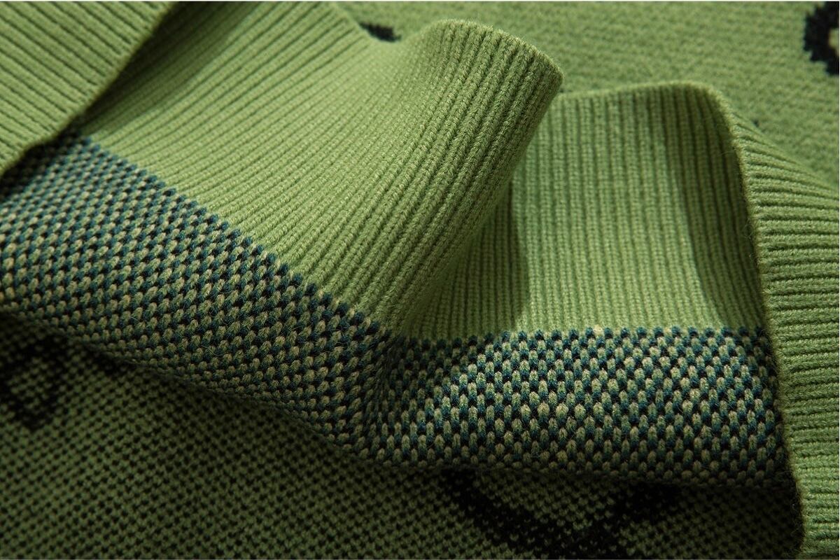 恐竜 アニマル柄 落書き風 長袖ニット 白 黒 緑
