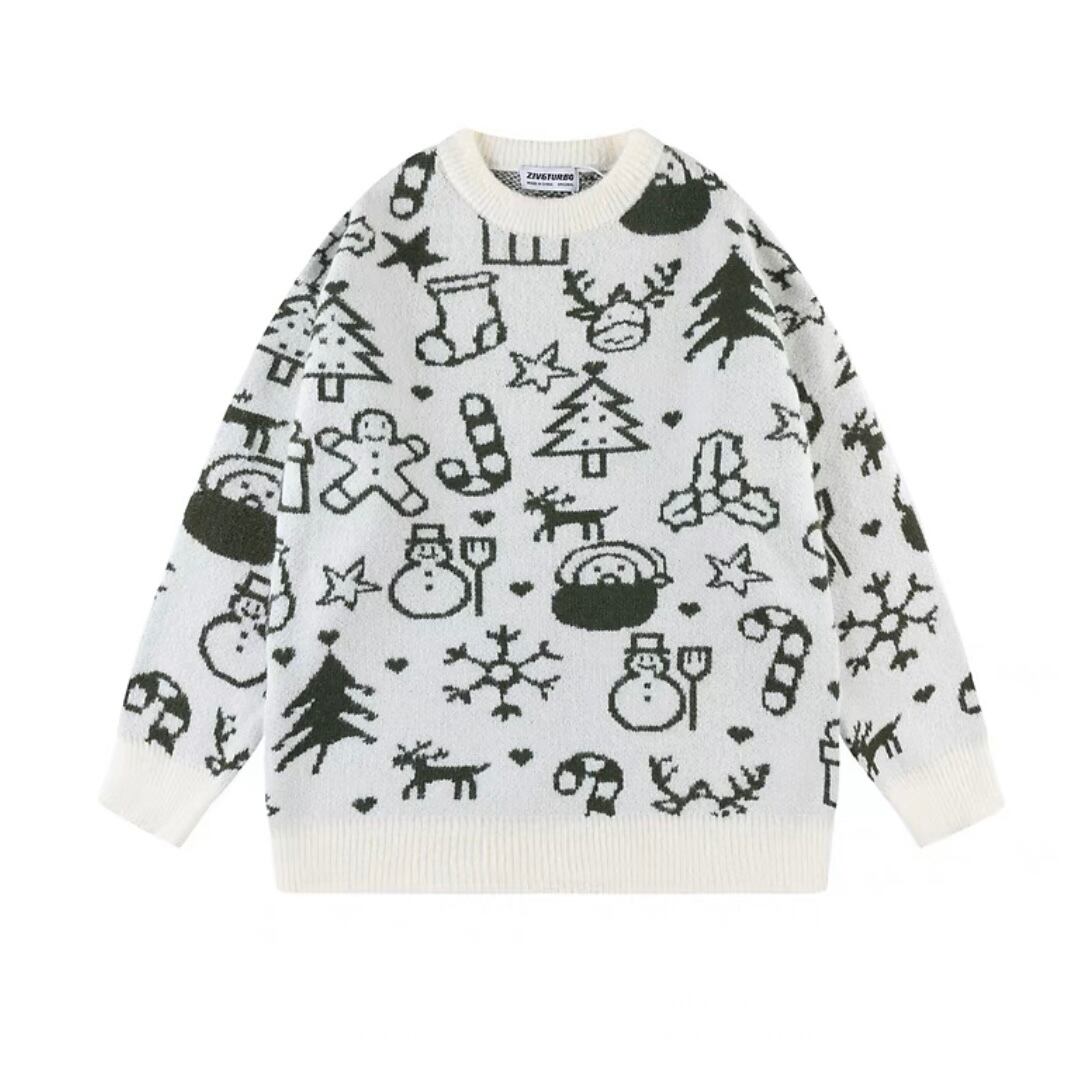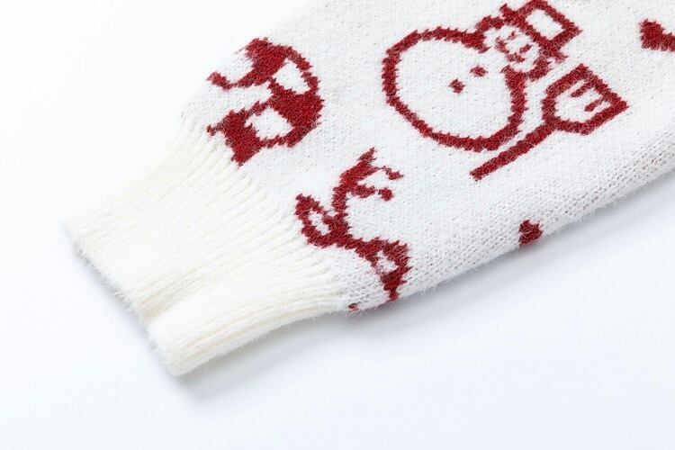 雪だるま 冬 長袖ニット 赤 緑 黒