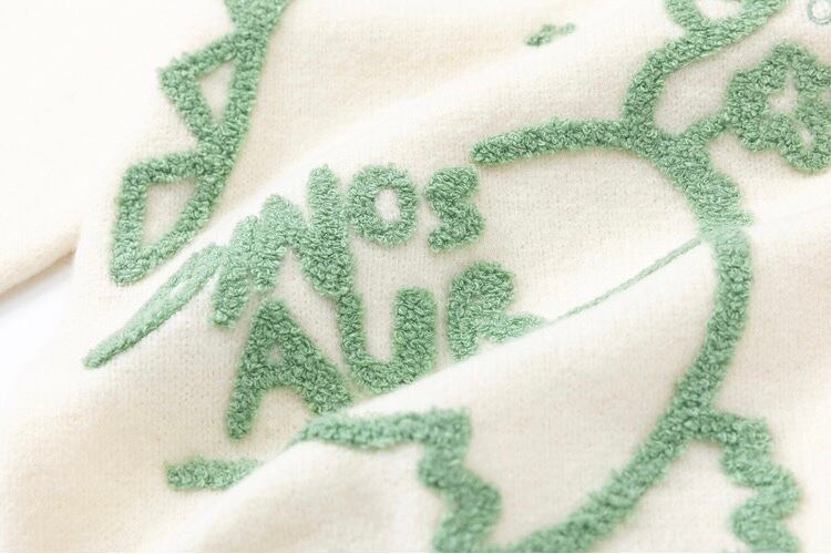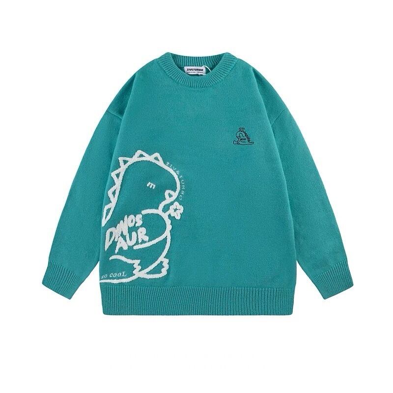 恐竜 アニマル柄 長袖ニット 黒 白 緑