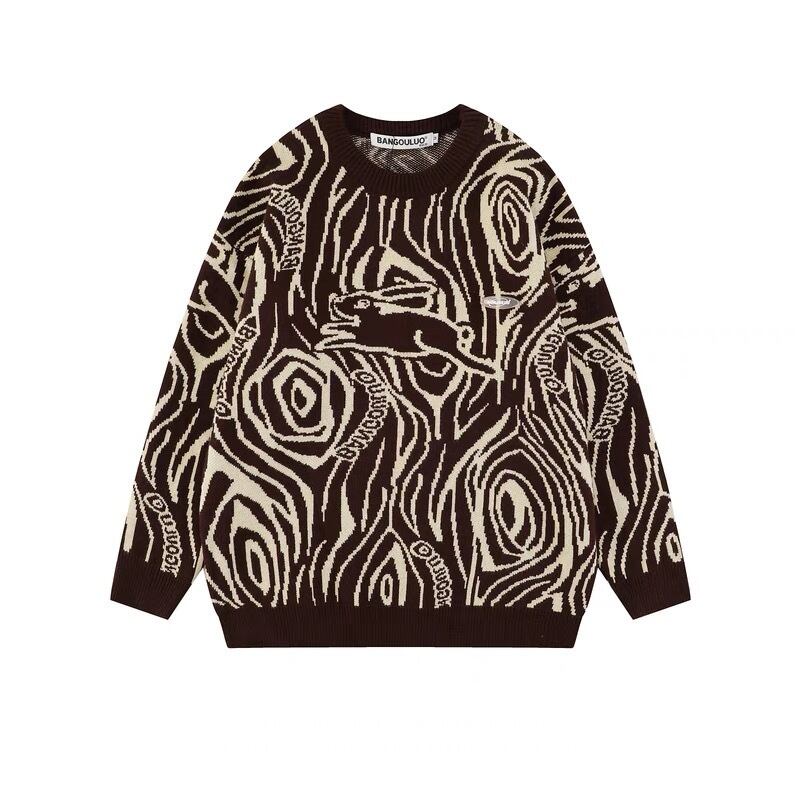 ウサギ アニマル柄 長袖ニット ブラウン ベージュ