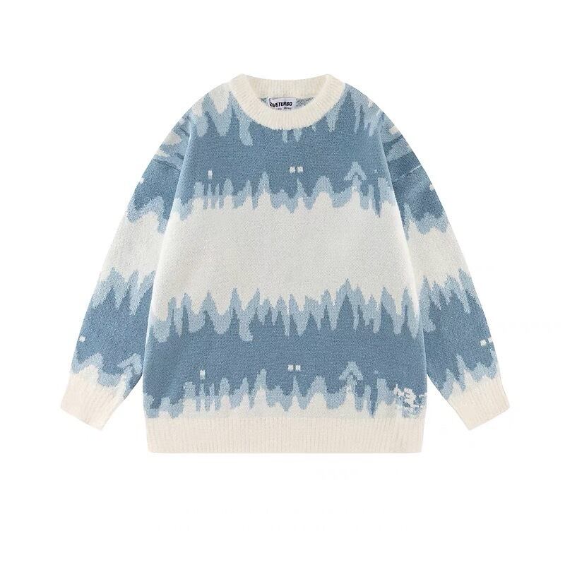 変形ボーダー 長袖ニット 青 ピンク 黒