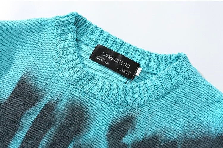 掠れ風ボーダー 長袖ニット 紫 青 白