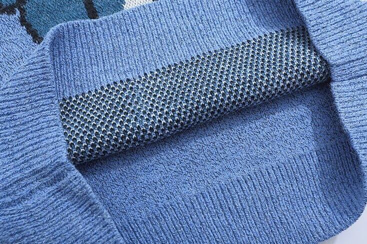サメ アニマル柄 長袖ニット 青 黒 グレー